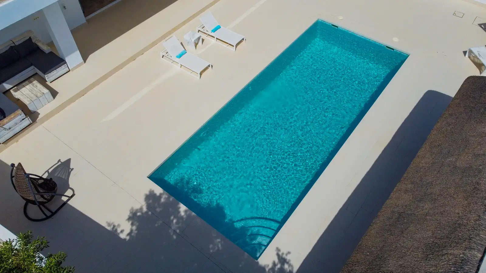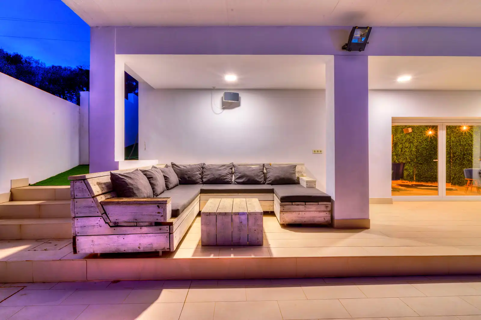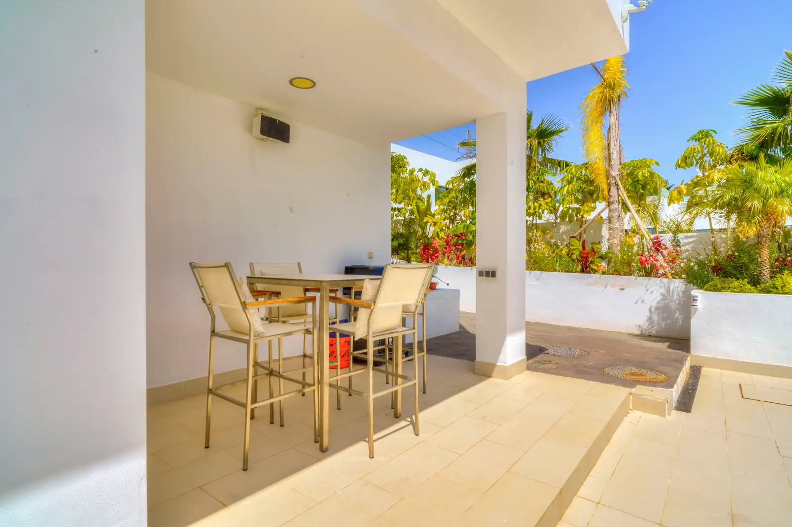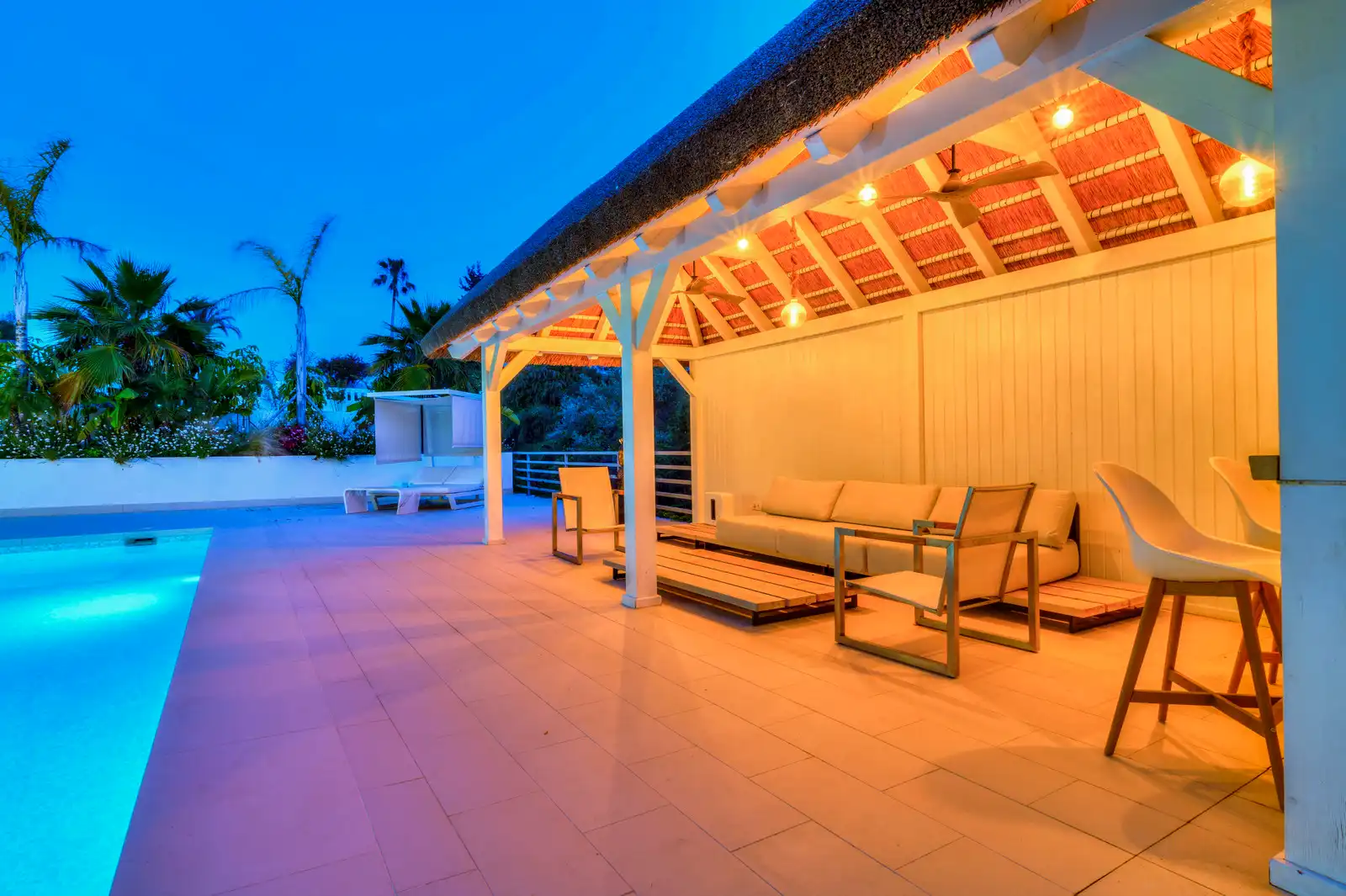 From this level we step out to the beautiful garden and pool area with its “chiringuito” space for chill out or outdoor summer celebrations.