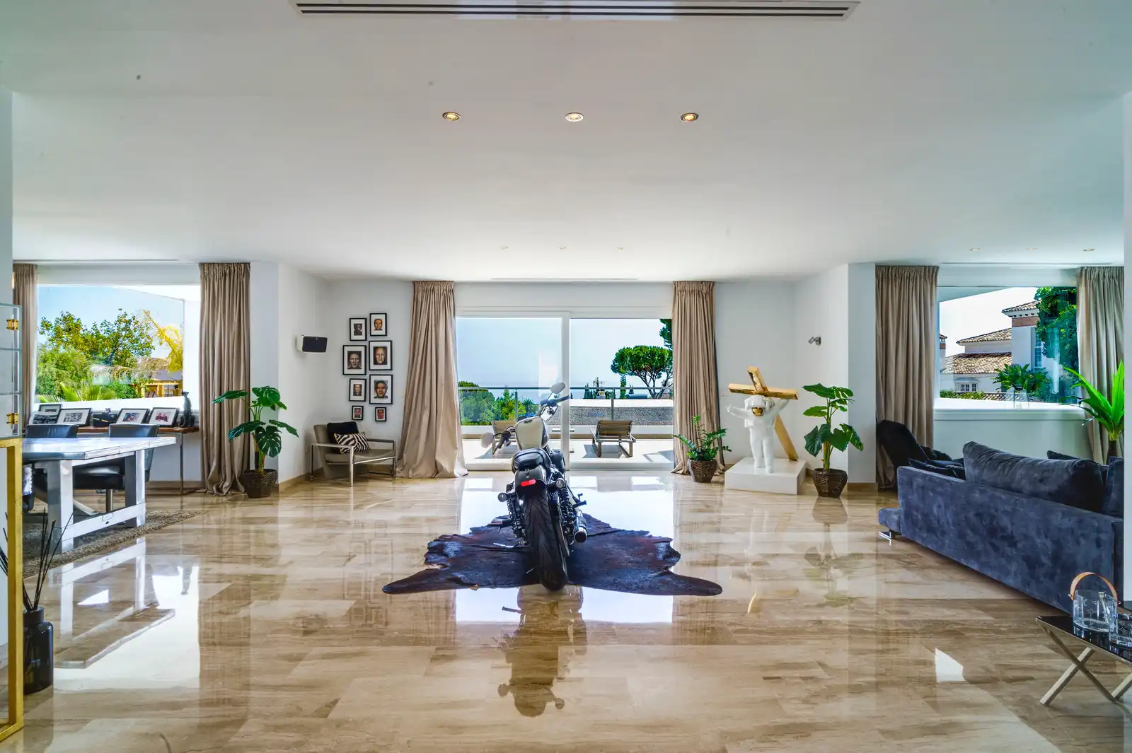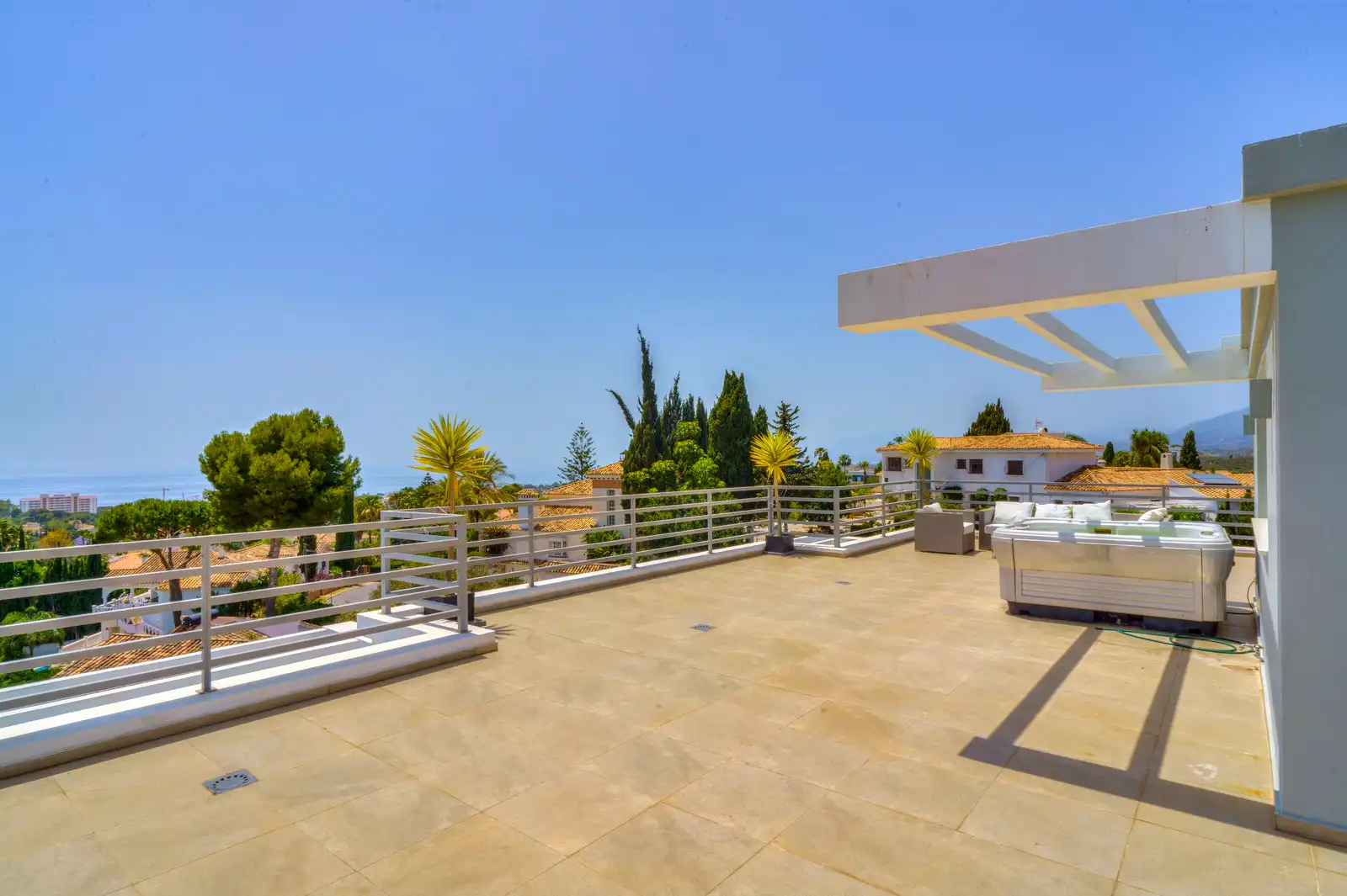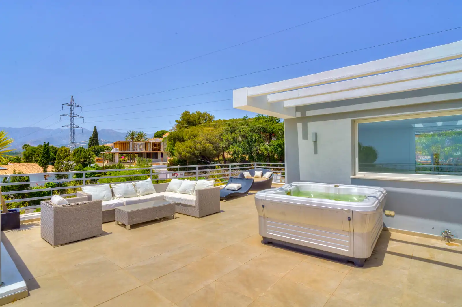 Beside the sea views, the greatest feature of this villa is, without any doubt, its location in El Rosario, which is a closed residential area in the Marbella East side with the best sandy beaches, most famous beach clubs and fine dining restaurants of all Marbella. All this, within only a few minutes drive from the historic centre of Marbella and the glorious Puerto Banus.