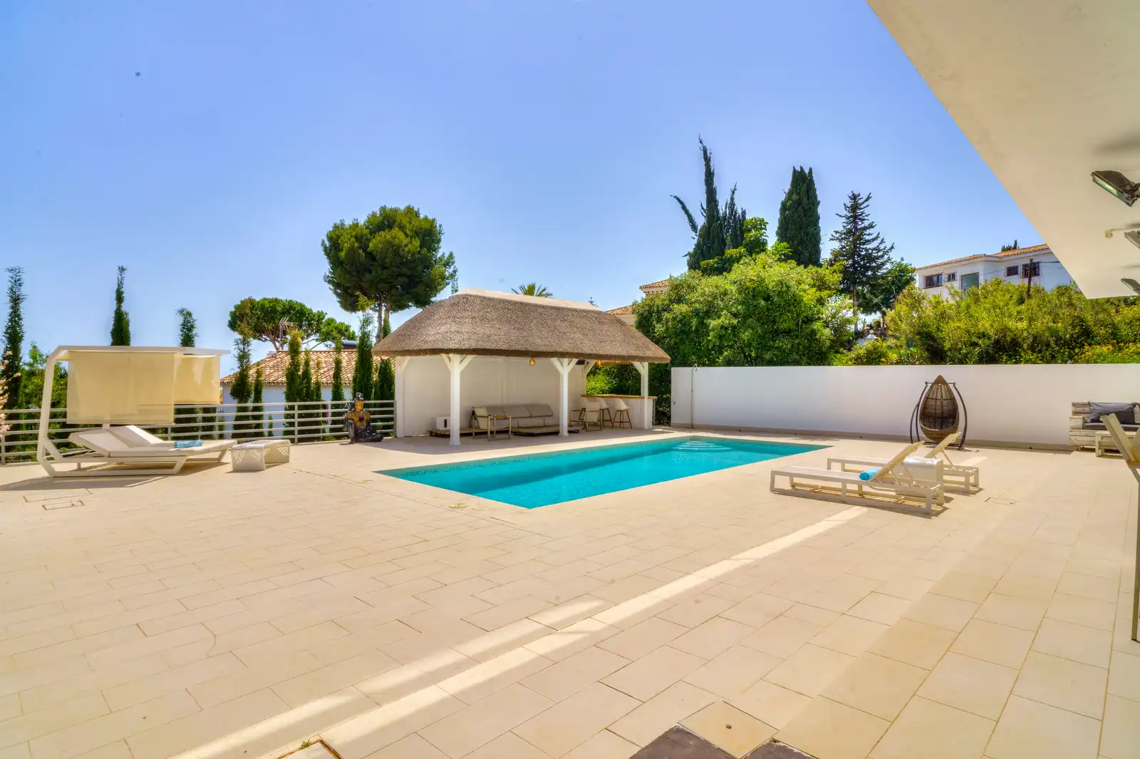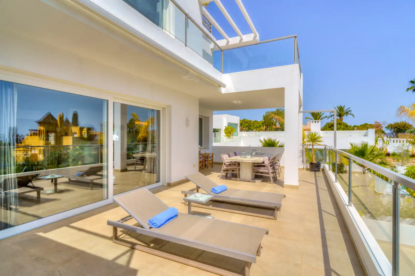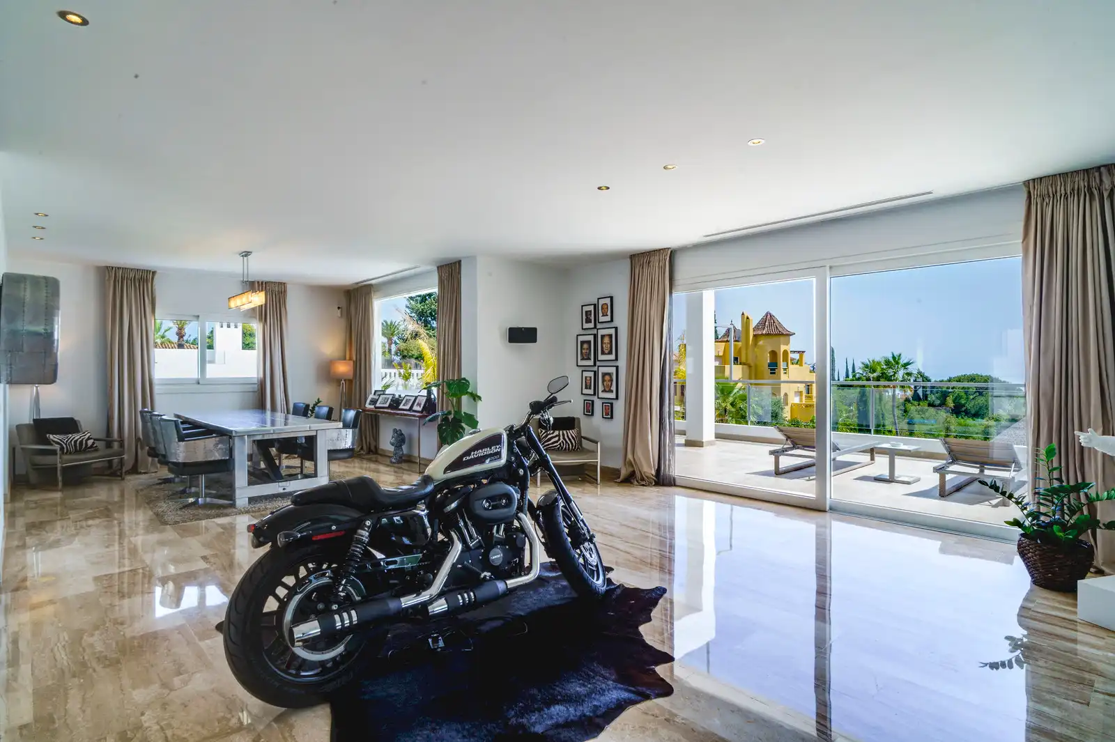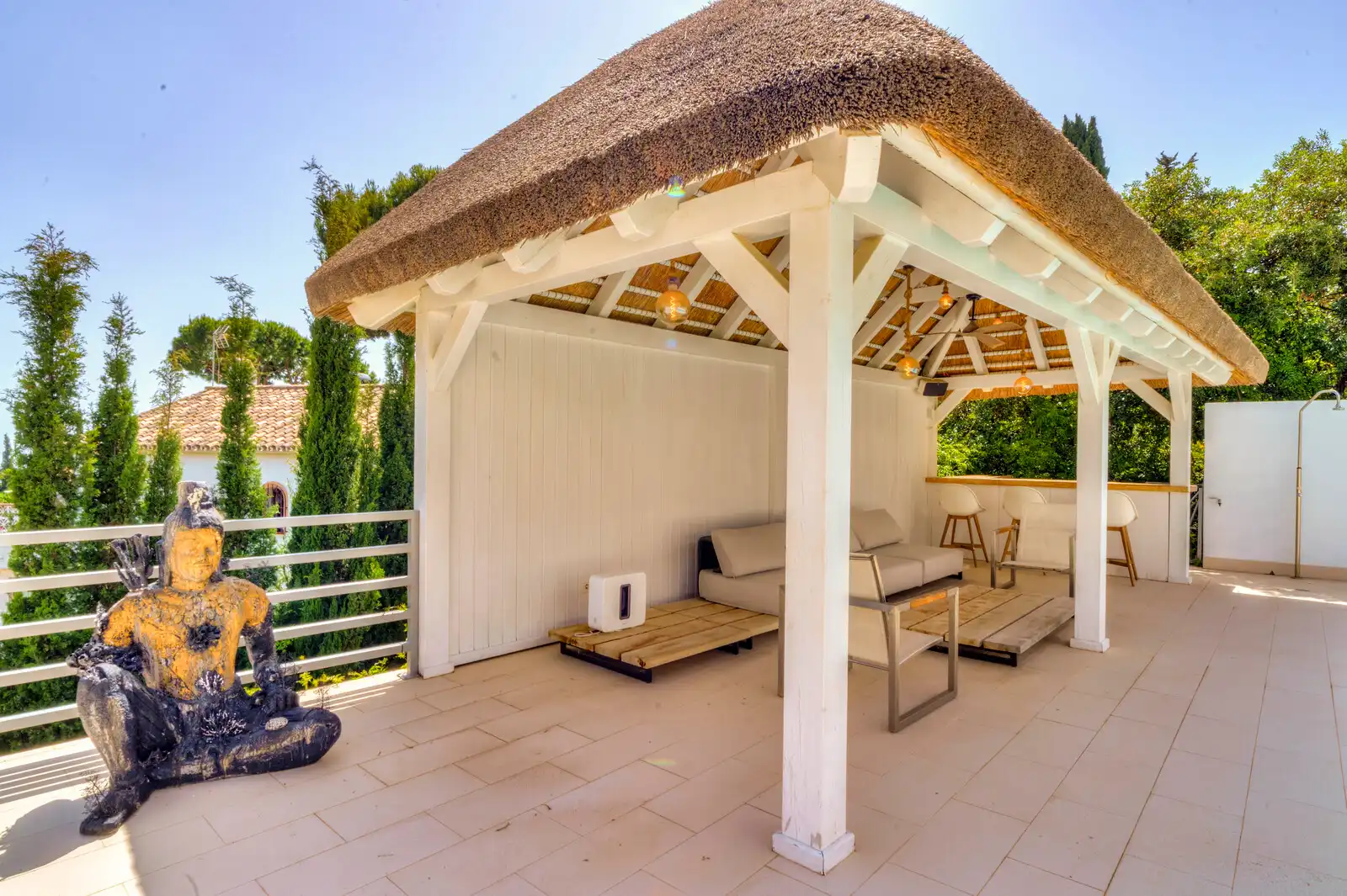 Beside the sea views, the greatest feature of this villa is, without any doubt, its location in El Rosario, which is a closed residential area in the Marbella East side with the best sandy beaches, most famous beach clubs and fine dining restaurants of all Marbella. All this, within only a few minutes drive from the historic centre of Marbella and the glorious Puerto Banus.