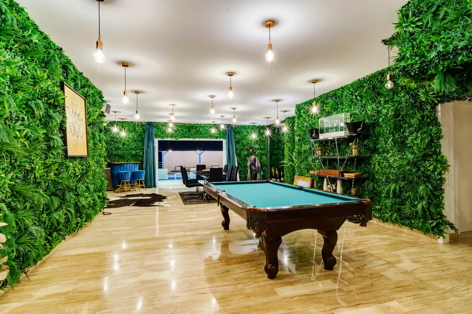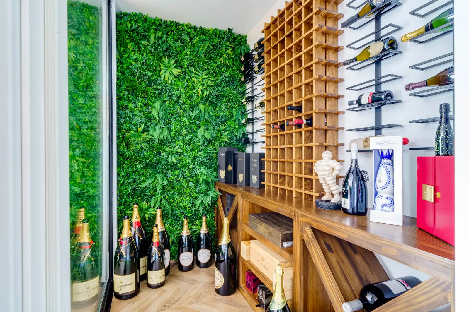 The lower pool/garden level is dedicated to leisure and wellness, featuring a big open entertainment room, a gym room, a home cinema room, a big storage room and an independent studio apartment with separate entrance for staff or guests.