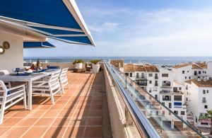 Discover one of a kind exquisite Penthouse (Only 8 of these Models available from all 4 Buildings) This is a VERY RARE unit just hit the market !! Nestled within the renowned Puerto Banus Marina, offering breathtaking Panoramic Views of the Mediterranean Sea and harbor from a 196sqm2 full wrap around terrace. Immerse yourself in the epitome of luxury coastal living in Puerto Banus, (Located in-front of Famous Cortes Ingles) where a plethora of high-end boutiques, avant-garde restaurants, and opulent leisure activities await, all under the glorious Marbella climate.