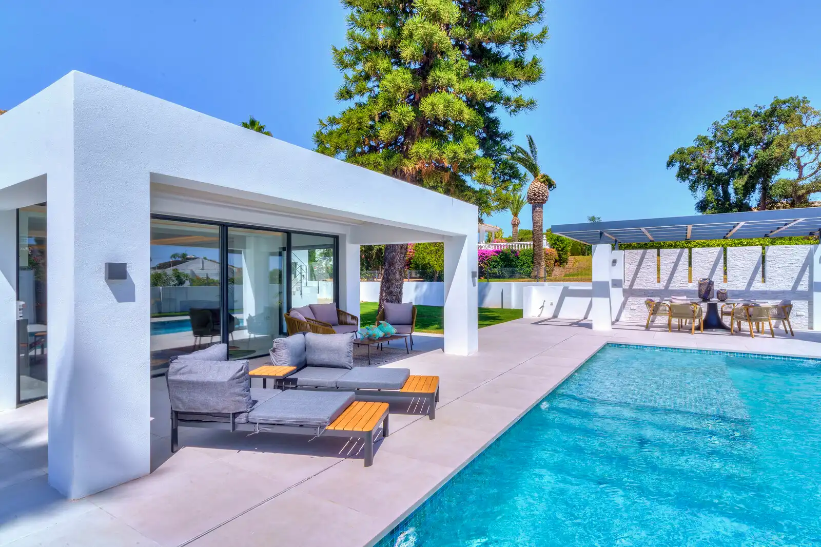 This stunning South oriented villa with a Scandinavian touch of wood has just been totally reformed to a high standard and finished now in July 2024.